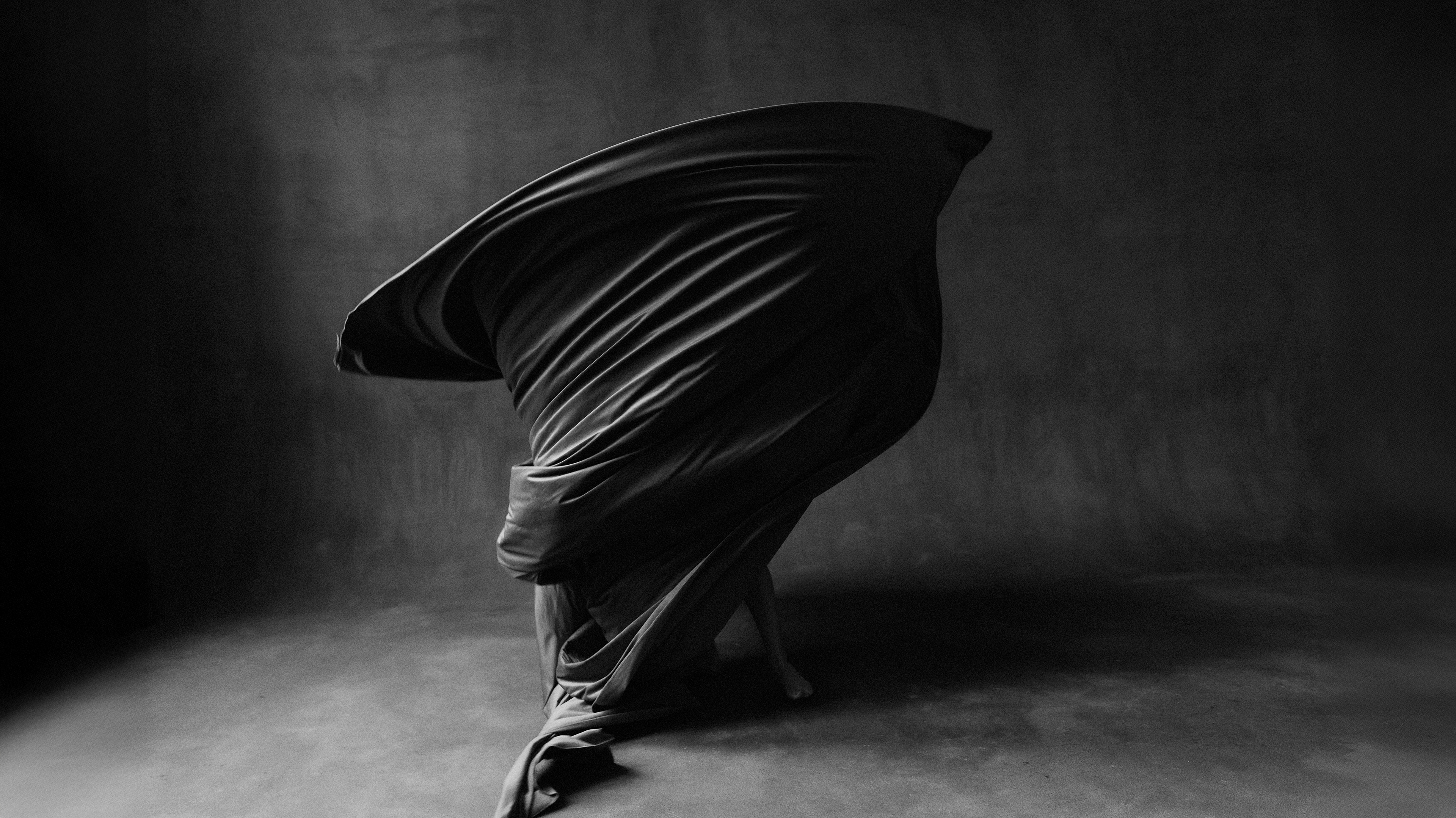 This work explores the paradox of destruction: what appears to be a natural, uncontrollable force is actually shaped by human hands. The abstract shape of the tornado symbolizes chaos, but a glimpse of human presence beneath the fabric reveals its origin.